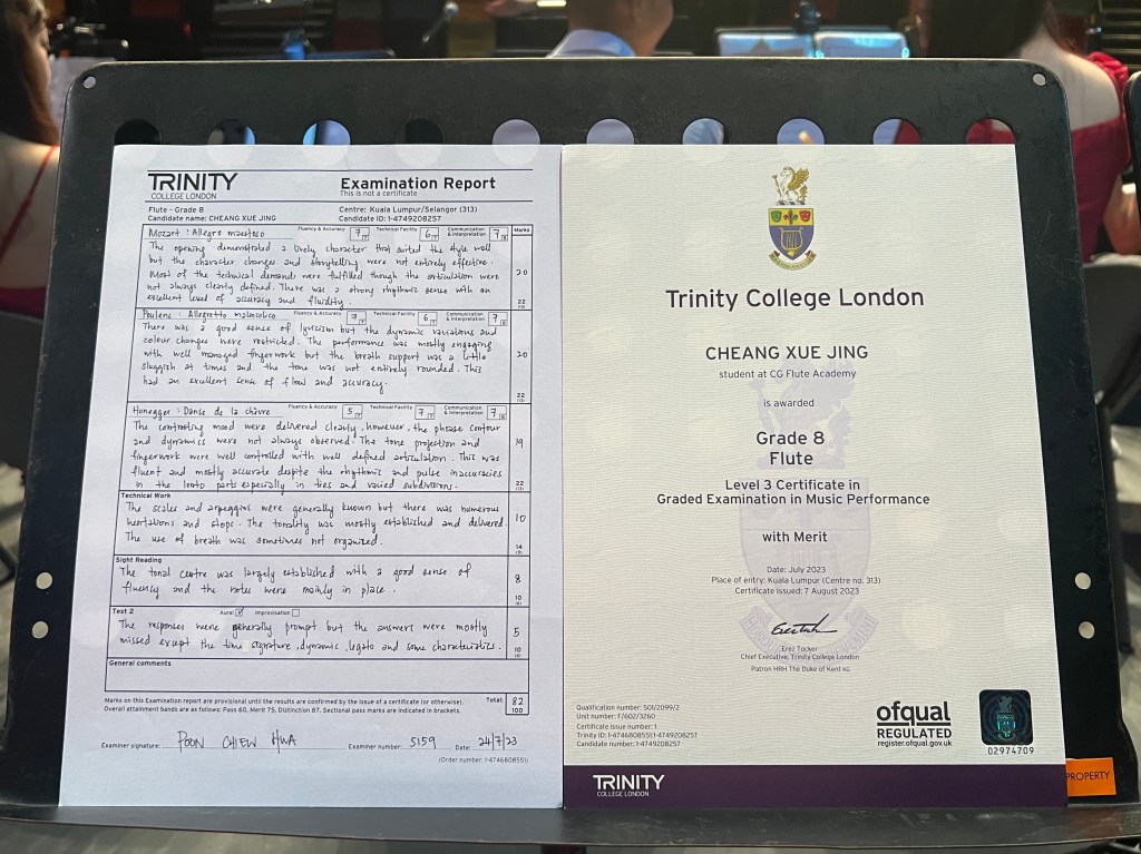 ABRSM Grade 8 Flute Pratical passed with Merit in 2024