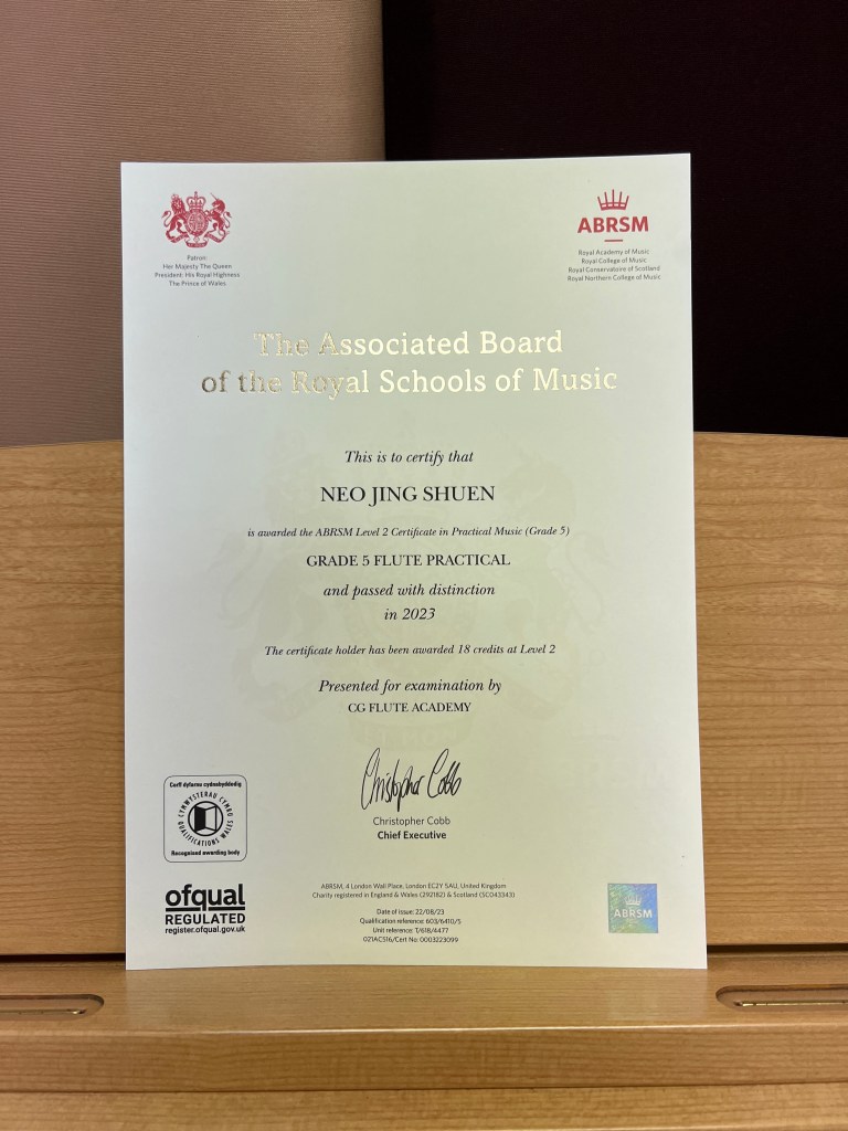 ABRSM Grade 5 Flute Practical passed with Distinction in 2023